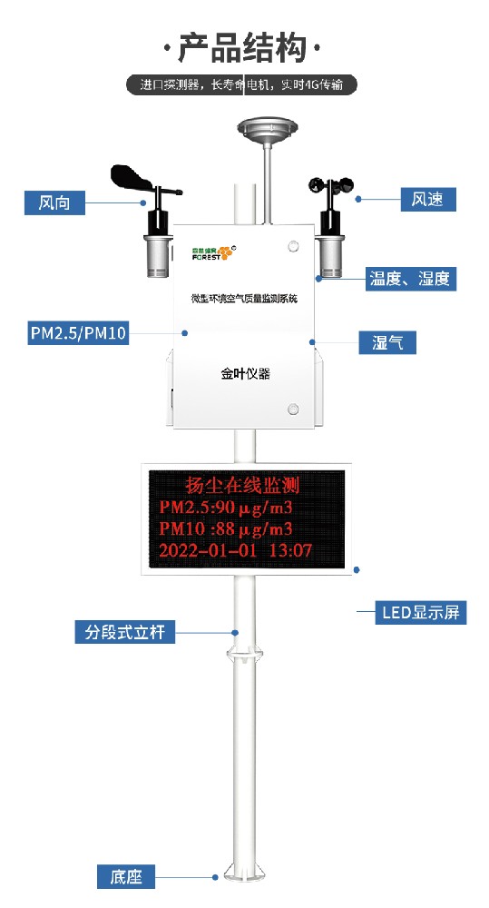 它是一種體積小巧、部署靈活的環(huán)境監(jiān)測(cè)設(shè)備,相比傳統(tǒng)大型監(jiān)測(cè)站,無(wú)需復(fù)雜基建,可快速安裝在社區(qū)樓頂、街道綠化帶、企業(yè)廠區(qū)周邊等區(qū)域。核心功能是實(shí)時(shí)采集空氣中的 PM2.5、PM10、二氧化硫、二氧化氮、臭氧、一氧化碳等關(guān)鍵污染物數(shù)據(jù),同時(shí)記錄溫度、濕度、風(fēng)速等氣象參數(shù),為小范圍區(qū)域的空氣質(zhì)量評(píng)估提供支撐。